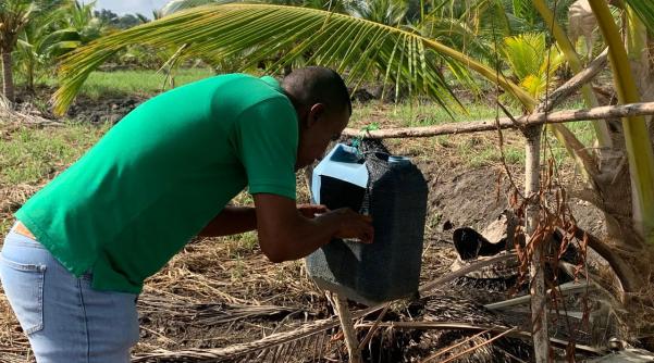 Por su parte, Juan Rodríguez, agricultor y miembro de la organización Fedecoco, señaló que los productores han implementado estrategias para combatir esta plaga mediante “trampeos”. Esta técnica consiste en atraer al insecto con el olor de melaza de caña o “picha”, para que finalmente caiga y muera en trampas artesanales fabricadas por los mismos campesinos.