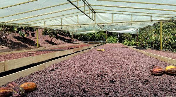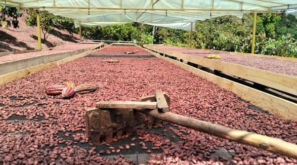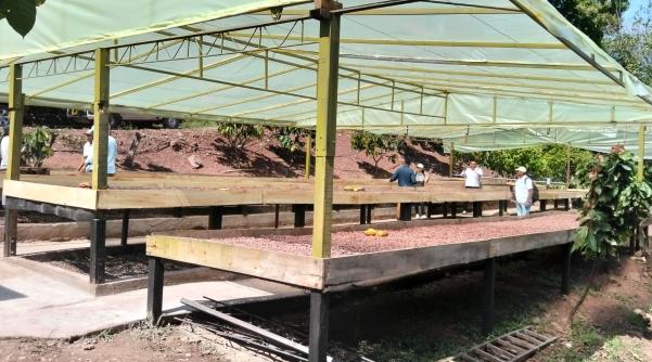 La central está conformada por una estructura de maderas simples y plastificadas y malla plastificada cacaotera de 16 mm para que no pase el grano de Cacao, pero limpia un poco más el producto. Se usa plástico invernadero y las camillas de secado tienen 24 metros de largo por dos de ancho capacitadas para 1.440 kilos en baba, explicó Jesús Claro es el Profesional de Calidad de Socodevi.