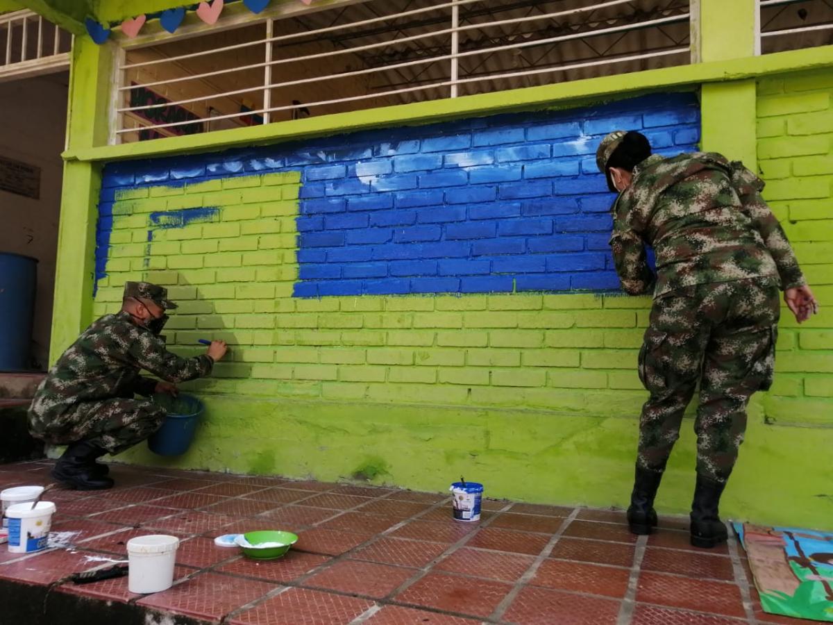 Así mismo, durante la jornada se desarrolló la sembratón colectiva de 50 especies de árboles nativos para el mejoramiento de las zonas verdes, atención en medicina veterinaria, la adecuación de escenarios deportivos, la instalación de baterías sanitarias y la pintura de murales por la paz en el centro educativo.