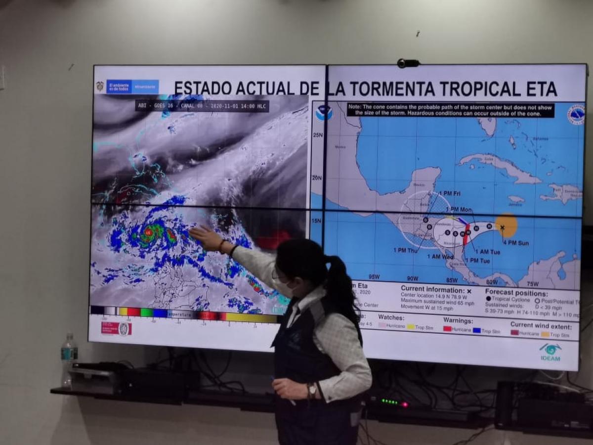 Según el Ideam en su más reciente boletín, la tormenta tropical ETA sigue apoyando las condiciones meteorológicas de tiempo lluvioso en gran parte del territorio nacional y de manera especial en el Caribe, incluidas áreas continental, marítima y de archipiélago como San Andrés, Providencia y Santa Catalina, así como sus cayos, donde se mantendrán las condiciones lluviosas con alta posibilidad de actividad eléctrica y vientos por encima de lo normal para los próximos días.