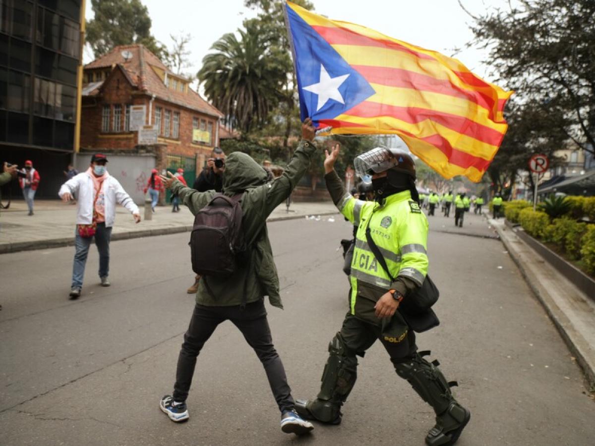 El lugar, que estaba custodiado por hombres de la Policía desde tempranas horas de la mañana, fue controlado por el Esmad a los pocos minutos de haber iniciado los disturbios.