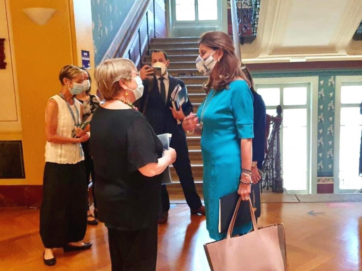 La vicepresidente y canciller Marta Lucía Ramírez se reunió este lunes con la alta comisionada de las Naciones Unidas para los Derechos Humanos, Michelle Bachelet, en el inicio de su agenda diplomática en Europa.