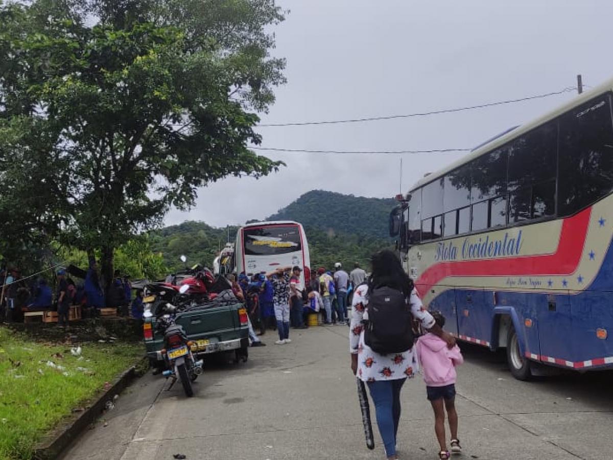 Decenas de vehículos se encuentran represados en la vía que comunica al departamento del Chocó con Risaralda, a la altura del municipio de Tadó, debido al bloqueo que realizan desde hace más 72 horas, comunidades indígenas de la zona.