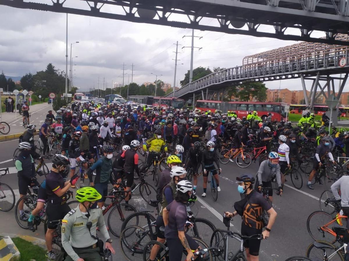 Un grupo de alrededor de 200 biciusuarios se movilizaron este sábado sobre la Autopista Norte en Bogotá, desde la Calle 200 hasta la 134, para manifestar de manera pacífica en rechazo a los constantes robos de bicicletas en la ciudad.