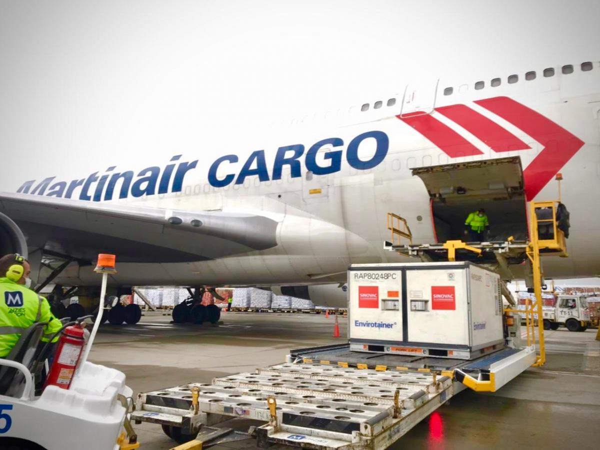 Los biológicos llegaron a las 5:17 de la tarde en el vuelo MP6121, de la aerolínea de carga neerlandesa MartinAir, procedente de la ciudad de Miami (Estados Unidos).