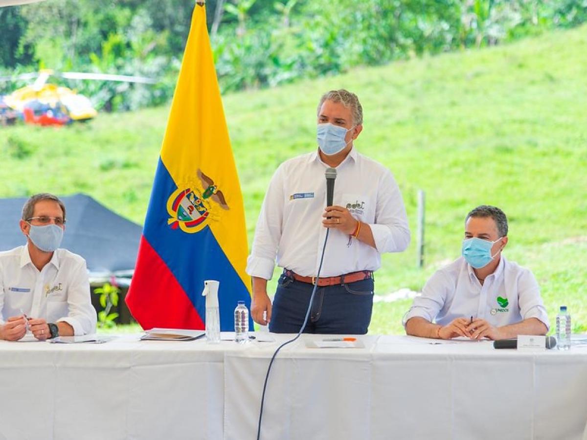 En el marco de su visita al antiguo Espacio Territorial de Capacitación y Reincorporación (ETCR) de ‘Llano Grande’, ubicado en Dabeiba (Antioquia), el presidente Iván Duque les hizo entrega formal a los excombatientes de las Farc de un predio de 17 hectáreas para construir viviendas y proyectos productivos.