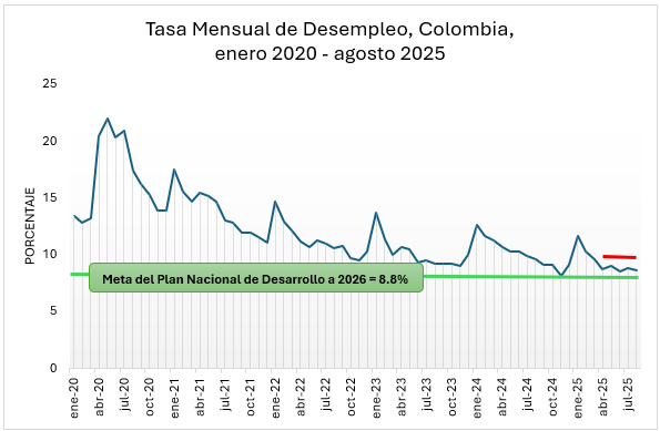 📌 Esta tasa es la más baja de toda la serie desde 2001 para agosto. pic.twitter.com/9AfkOncwfD— DANE Colombia (@DANE_Colombia) September 30, 2025