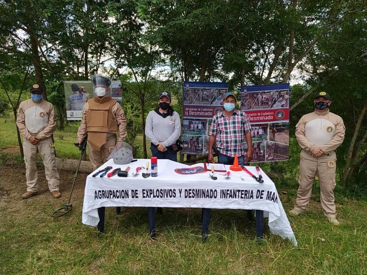 Tripulantes de la Compañía de Desminado Humanitario de la Brigada de Infantería de Marina No.1 dieron inicio a sus labores de despeje en estas áreas específicas a finales del año 2019, aplicando la técnica de desminado manual para despejar en total 4.778 metros, encontrando en una de las áreas una mina antipersonal, la cual fue desactivada de manera controlada por personal experto.