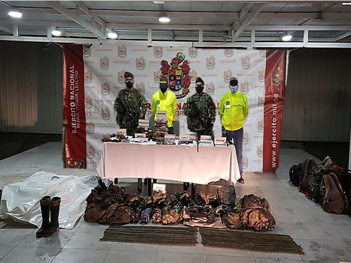 En información entregada por el Ejército Nacional en comunicado de prensa, también “se logra la incautación de abundante material de intendencia, golpeando así las estructuras logísticas de estos grupos ilegales que pretenden alterar el orden público en el departamento de Nariño y que tienen como base el negocio del narcotráfico para su financiación”.