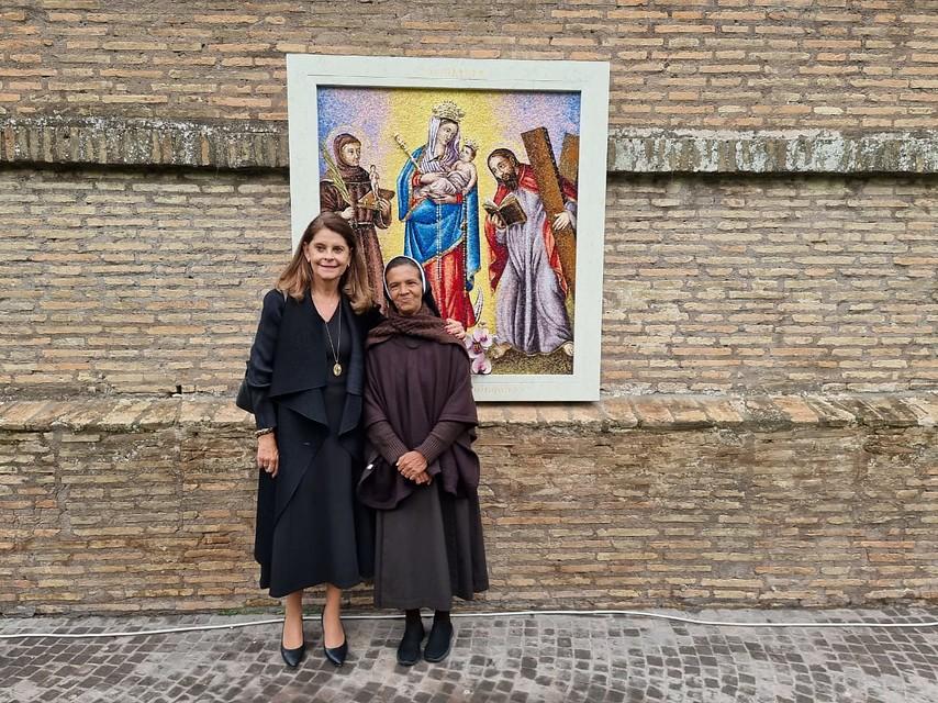 La religiosa, que estuvo por más de cuatro años retenida por un grupo terrorista de Al-Qaeda, se encontró con la alta funcionaria colombiana en los jardines de El Vaticano, ubicados en la Plaza Bastione di Maestro, espacio donde se encuentran los mosaicos de las vírgenes mariana regaladas por los Estados.