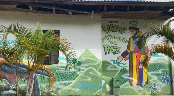 Los artífices de estas imágenes plasmadas en paredes que en otrora resistieron a la guerra fueron firmantes de paz como símbolo de reconciliación. Fredy nos comentó que el objetivo "es recuperar esta iniciativa denominada 'San Adolfo se pinta de colores' y que más firmantes vuelvan al territorio".