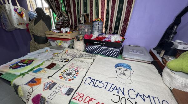 "Se aprendió a bordar y se aprendió a hablar con el alma, porque cada hilo y cada puntada es recordar, es como uno ir al pasado y recordar sin dolor, sanar, bordar ese dolor y volverlo como arte. Por lo menos cuando yo estaba haciendo la foto de Cristian, me levantaba tipo dos de la mañana, no podía dormir y me paraba a bordar”, narra con calma.