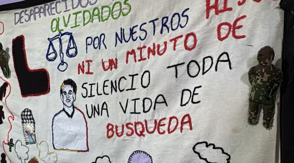 ¿Quién dio la orden? ¿Volver a empezar la búsqueda? El arte a través de la creación de murales y posteriormente tejidos ha guiado el proceso de resiliencia y búsqueda incansables de Nohemí. Con el apoyo de la Unidad de Búsqueda de Personas Dadas por Desaparecidas la madre buscadora cuenta que pudieron acceder a capacitación virtual en bordado y tejido con la Casa Cultural Feminista MOIRAS que en Cúcuta acoge a mujeres buscadoras de víctimas de desaparición forzada, transformando el duelo en resistencia, arte y unidad.