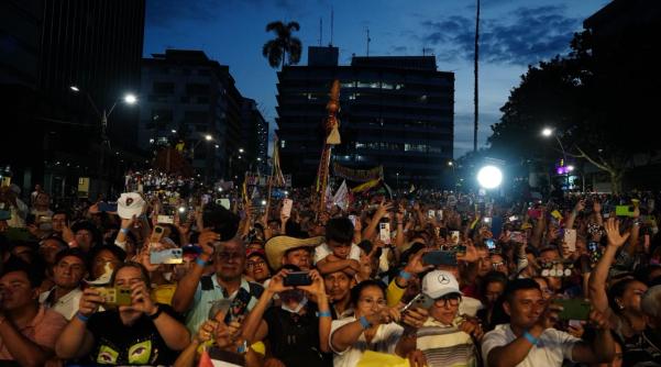 La plaza, que se mantuvo llena hasta entrada la noche, vibró con música, banderas y consignas que acompañaron al mandatario en un evento que los asistentes calificaron como un capítulo histórico para la región.