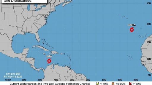 Tormenta tropical Iota continúa su recorrido hacia Centroamérica