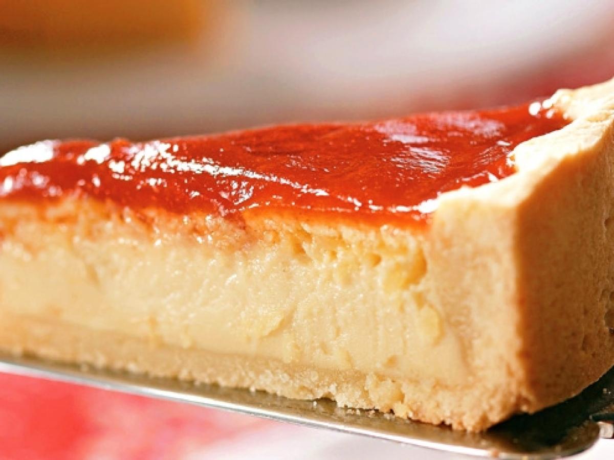 Saque del horno y riegue el dulce de guayaba por encima. Meta a la nevera por dos horas, lo que le daré una mejor contextura al relleno de queso y podrá fuerte la masa.