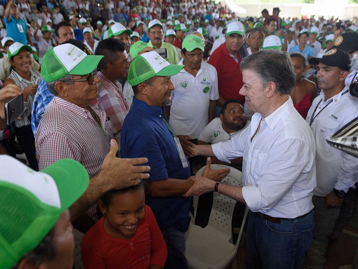 Santos reiteró que el objetivo es que los campesinos del país tengan sus propias tierras y por ello mencionó el decreto que firmó con sus facultades especiales para darles paso a los procesos de formalización de predios, pero también aprovechó para hacer un llamado al Congreso de la República para que aprueben la reforma a las regalías.