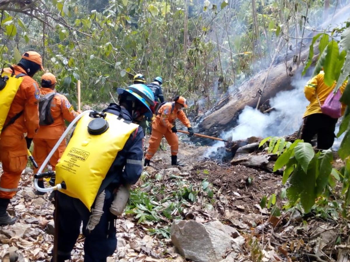 Unos 25 bomberos intentan controlar el incendio con apoyo de las brigadas indígenas y de la comunidad campesina, abriendo guardarrayas, que es lo usual en estos casos, y de ser necesario pedirían apoyo aéreo.
