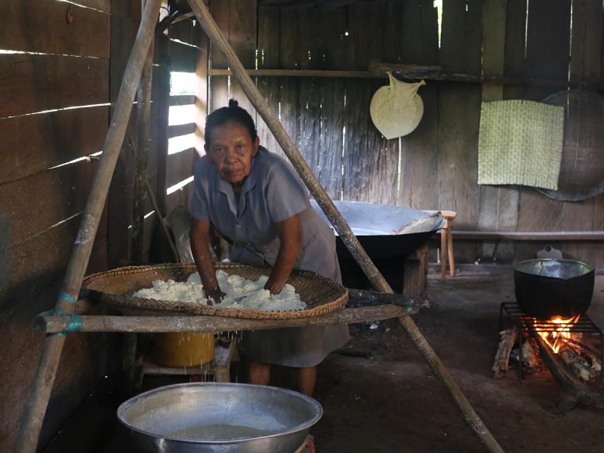 En estos territorios selváticos el arroz, los granos, inclusive las verduras, son ajenas a la dieta alimenticia, en cambio, la fariña y el casabe que se preparan con la yuca brava, son fundamentales como el agua para sobrevivir en la Amazonia.