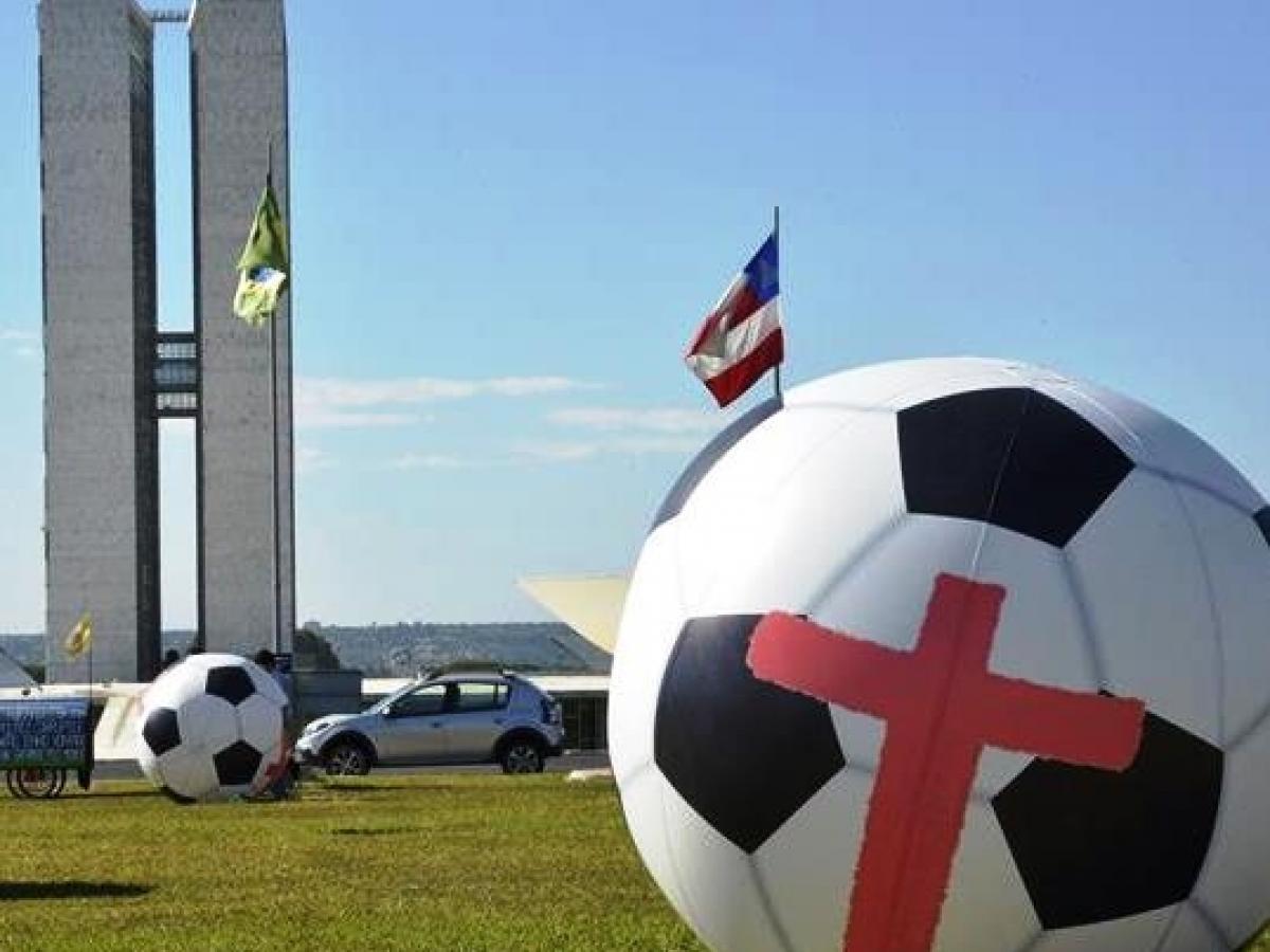 Lanzan balones gigantes en Brasilia en una nueva protesta contra el Mundial