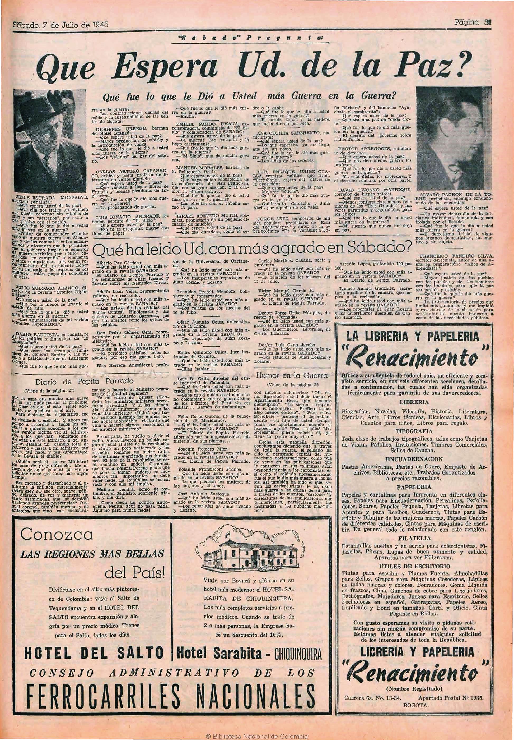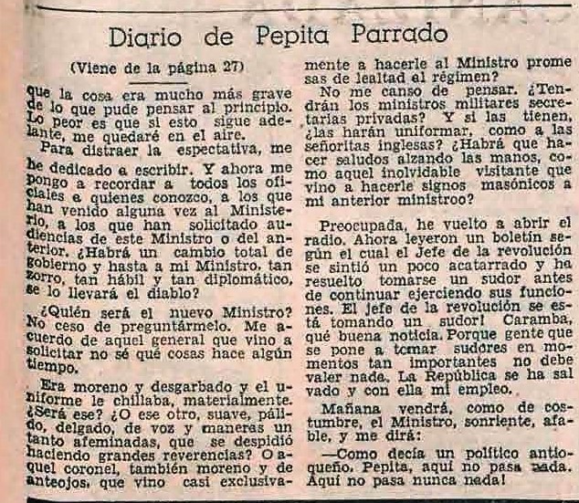 Sección del semanario en la que se narran los sucesos semanales utilizando la figura de un diario personal. En la narración imaginaria de Pepita Parrado, se relata cómo ella se enteró a través de las transmisiones radiales de lo que estaba ocurriendo en Pasto aquel 10 de julio. Este relato menciona directamente a la Radio Nacional de Colombia.
