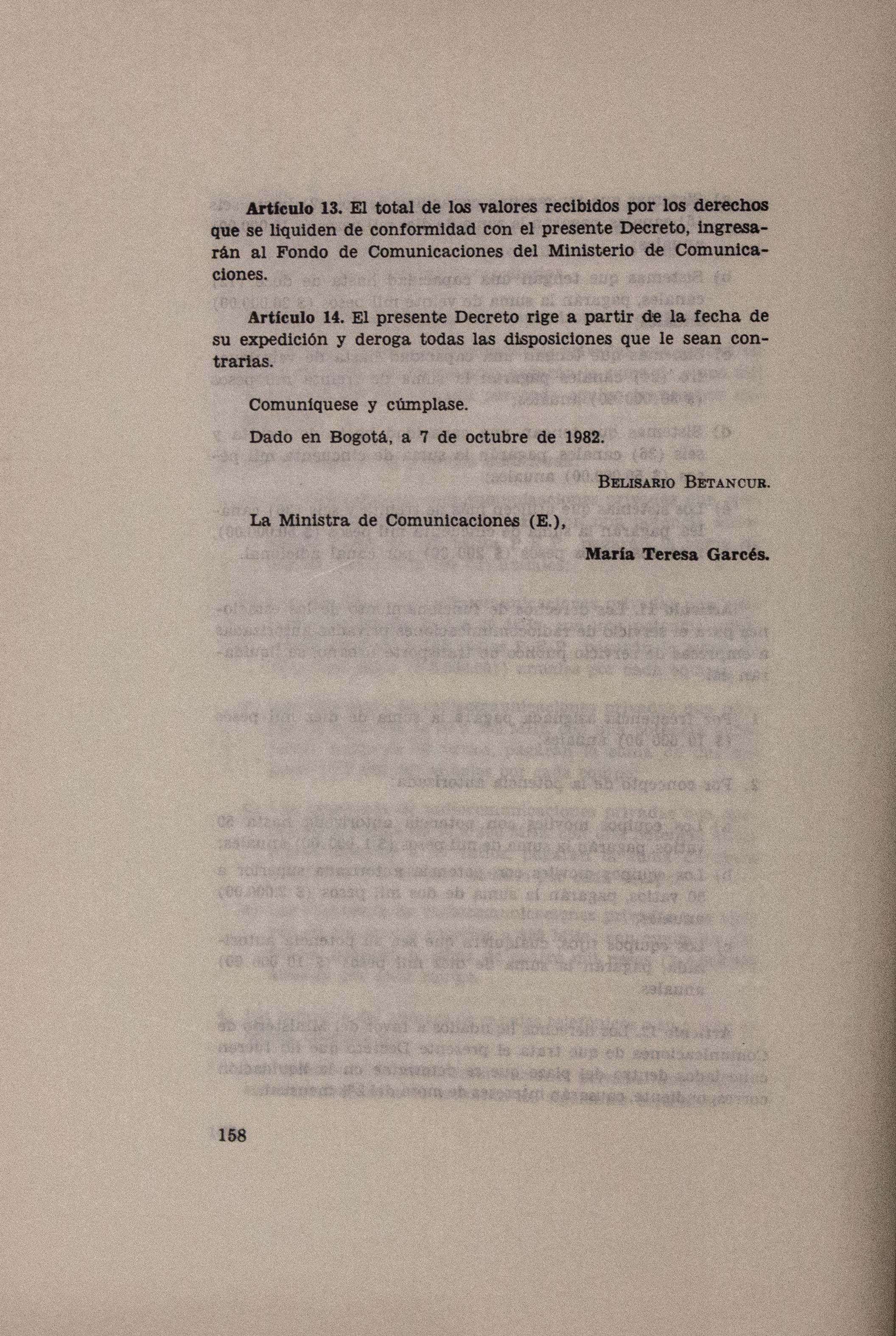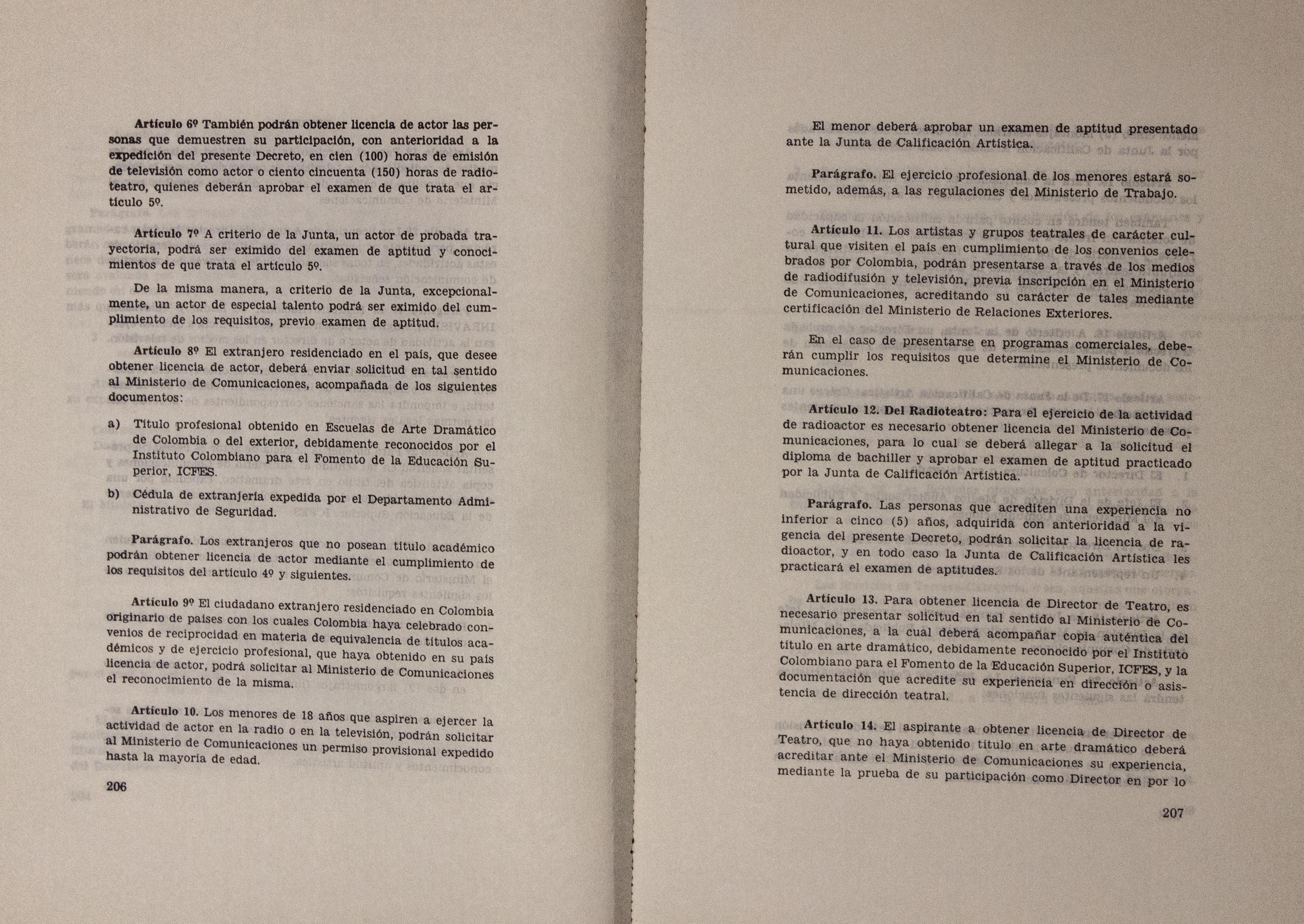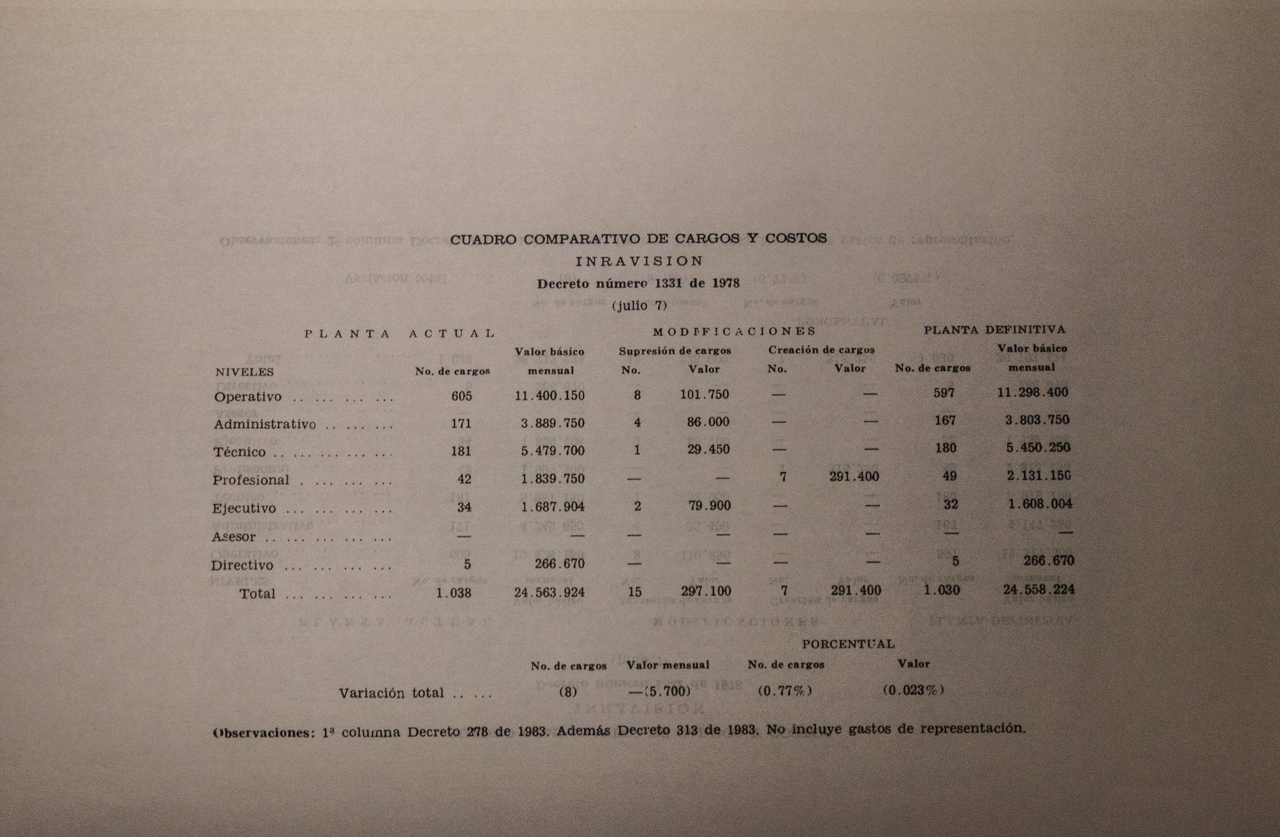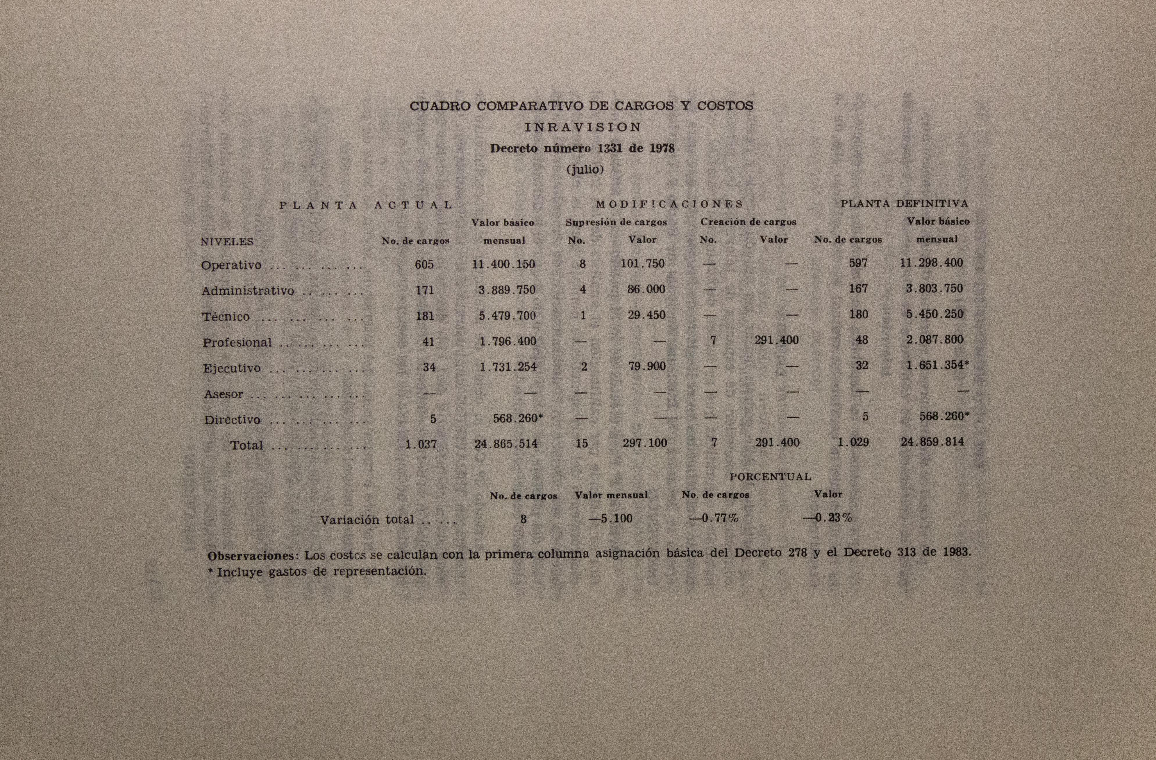Sobre la Radio Nacional de Colombia se indica la instalación de transmisores FM en distintos puntos del territorio nacional. Se señalan aspectos sobre el mejoramiento de Inravisión como la sistematización de la información y los gastos e inversión. Se incluyen varios decretos y leyes: a) Decreto 966 de 1983, que modifica la Planta de Inravisión; firmado por el presidente de la República Belisario Betancourt y el Ministro de Comunicaciones Bernardo Ramírez R; sustenta con tablas los cambios de la planta desde el punto de vista presupuestal. b) Ley 57 de 1982, que especifica cuáles serán los derechos salariales de los trabajadores. c) Decreto 2916 de 1982 que fija derechos de pago de radiocomunicaciones, según tipos de frecuencias y otros criterios como derechos de funcionamiento de emisoras de distinta naturaleza (cultural, comercial, educativa) y en sistemas AM, FM, onda corta, onda larga; d) Decreto 1131 de 1983 que reglamenta la expedición de licencias de radio y televisión que acreditan la calidad de actor o director. El decreto mencionan los requisitos para ser actor y director de radioteatro y los titulos académicos o equivalencias de los mismos. Para este último aspecto se crea la Junta de Calificación Artística. Se mencionan algunas necesidades relacionadas con la radio en Colombia: suspender frecuencias sin licencia, otorgar licencias de manera ordenada, ampliar la cobertura, llevar el medio a zonas afectadas por la violencia, entre otros."