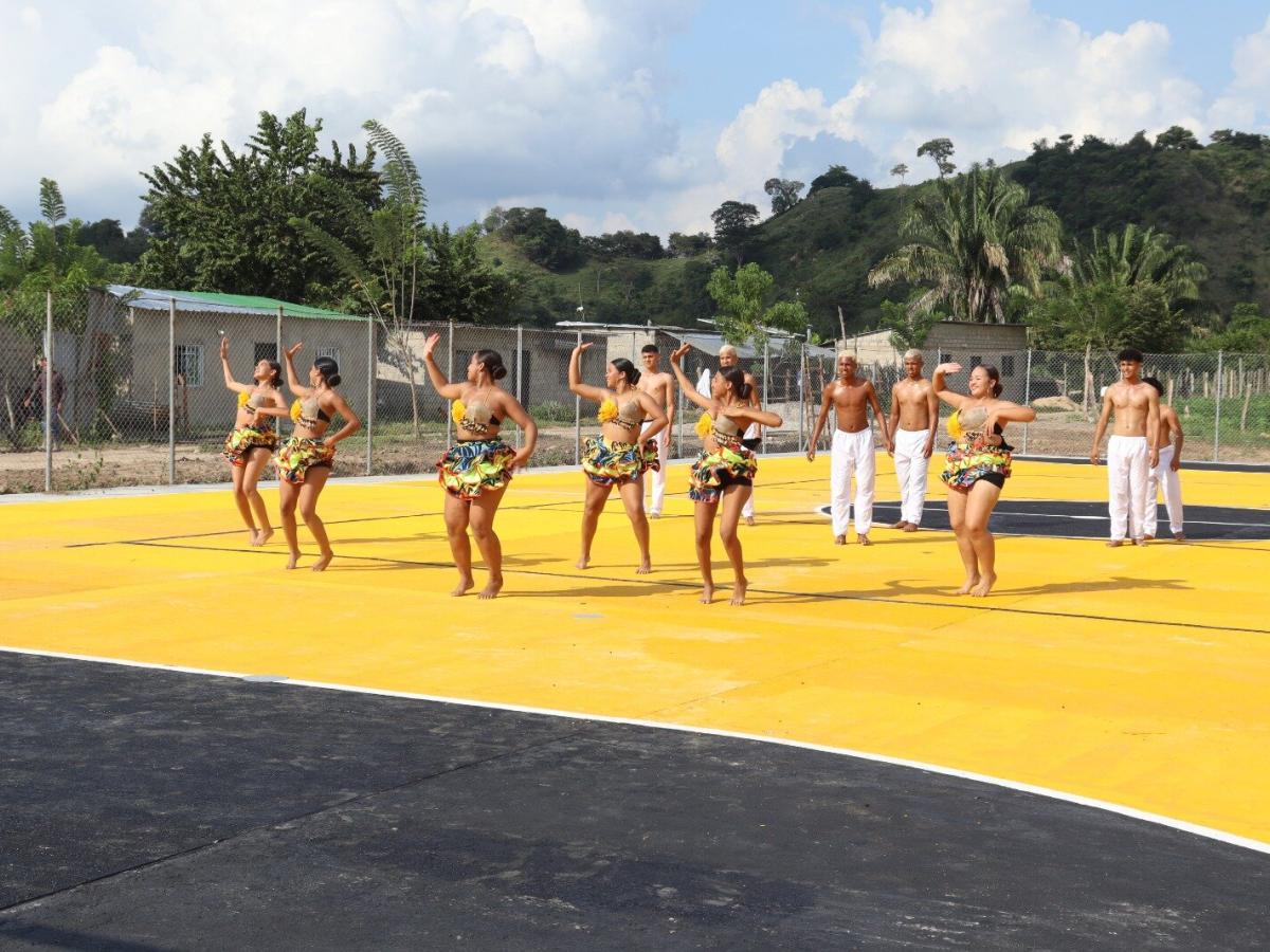 Este proyecto de infraestructura desarrollado por la Unidad para las Víctimas, contempló la entrega de materiales para la construcción de la casa multimodal y la cancha de fútbol.